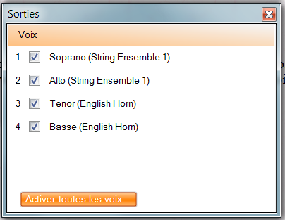 Pour réactiver une ou plusieurs voix, il faut cliquer sur la case de la voix désirée, ou bien cliquer sur le bouton « Activer toutes les voix ».